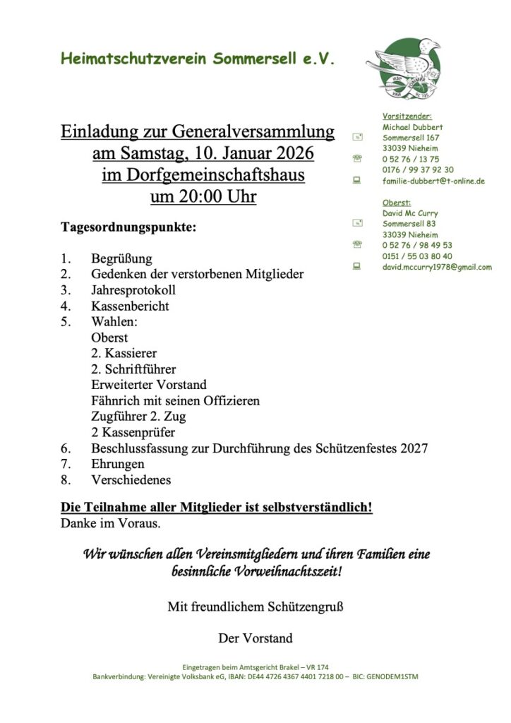 Generalversammlung Heimatschutzverein Sommersell e.V.